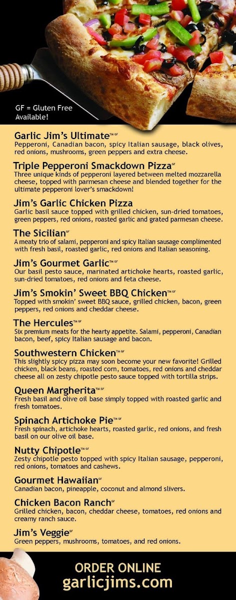 Whether you're dining in or ordering delivery, Garlic Jim's promises a delightful pizza experience that keeps patrons coming back for more.